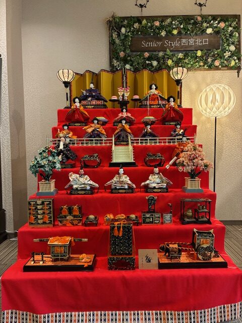 施設の玄関に立派なひな人形が飾られています。