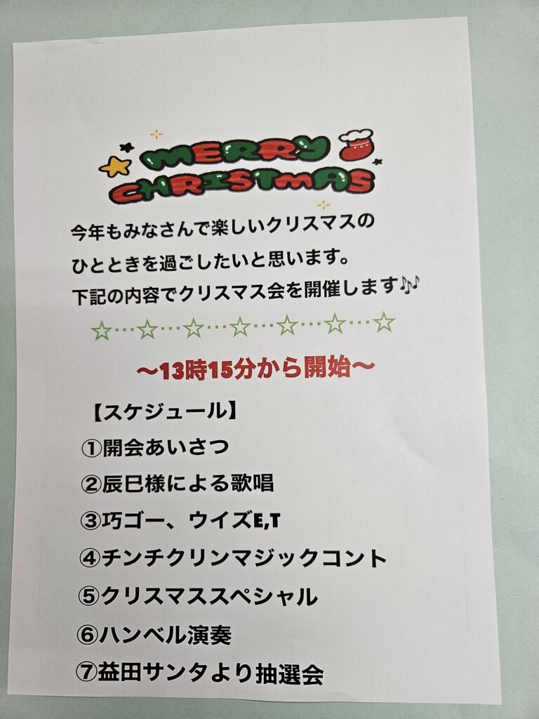 12月21日少し早いですがクリスマス会を開催しました