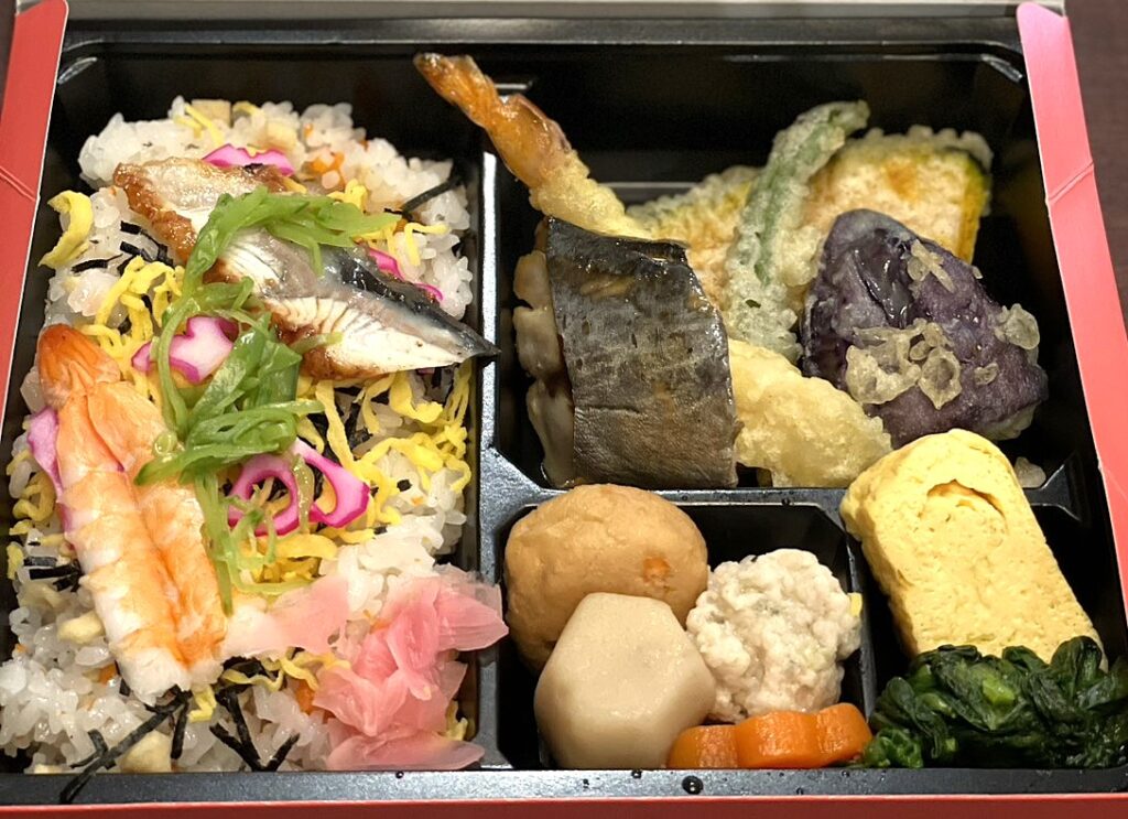 中身は・・・・ちらし寿司と、天ぷらの盛り合わせと…