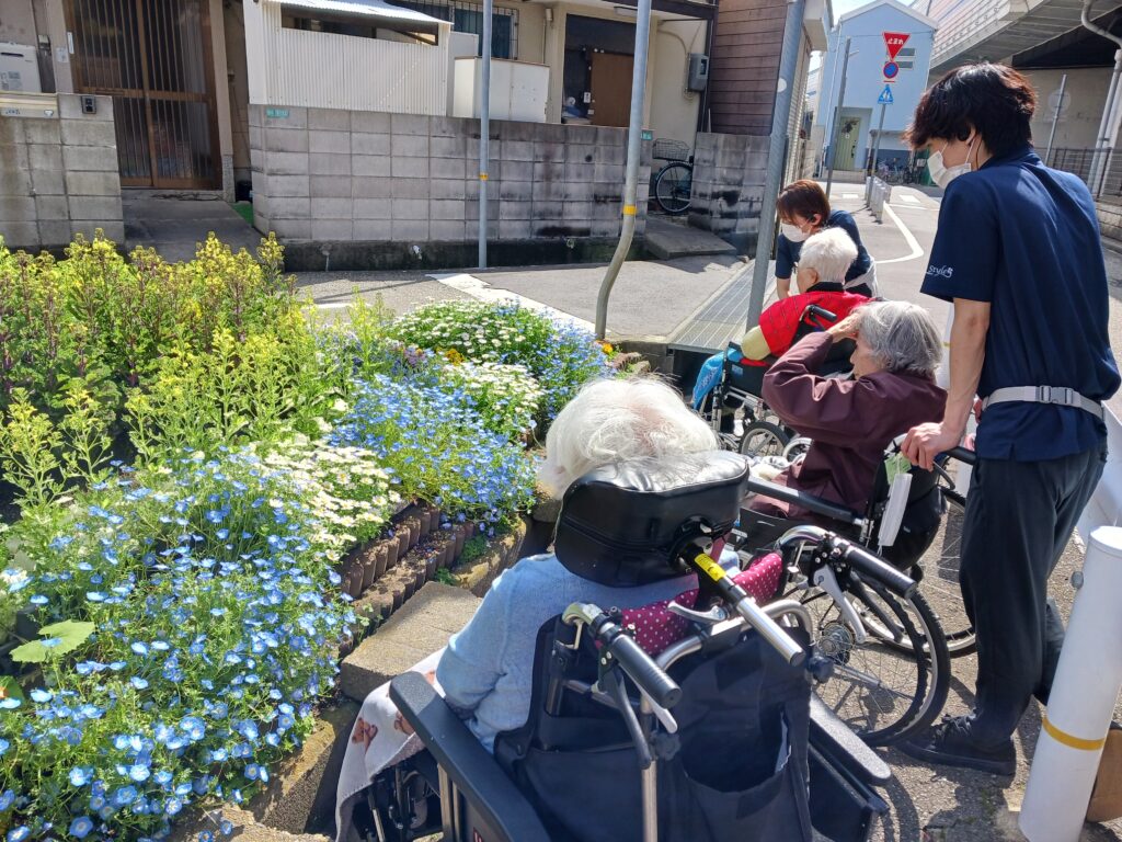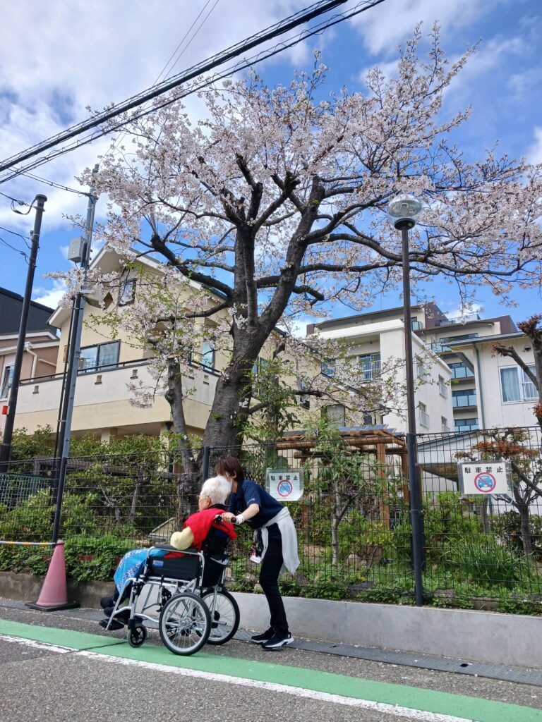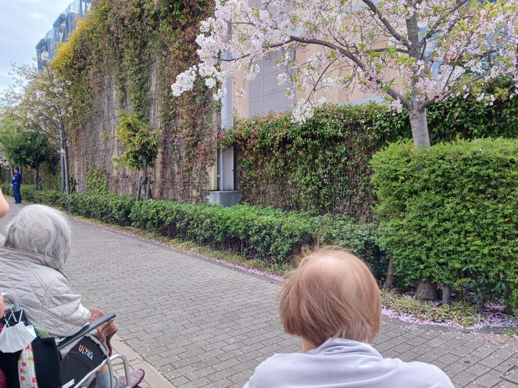 が…まだ咲いている桜🌸や他の綺麗なお花🌻を見る事が出来ました。入居者様もとても喜んで頂けました(^^♪