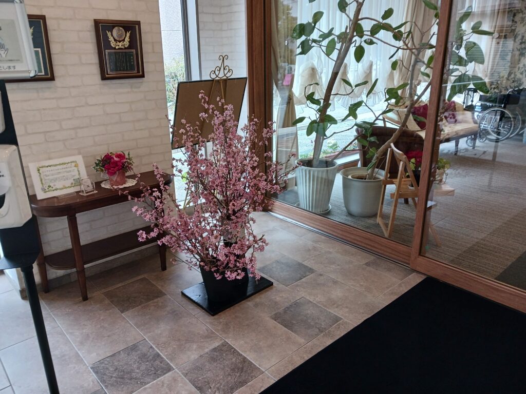 ここ数日過ごしやすい気候になってきてエントランスまで桜を見に来られるご利用者様が沢山いらっしゃいました。事務所にいる事が多い私からするとエントランスが賑やかになるのは嬉しい限りです。