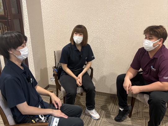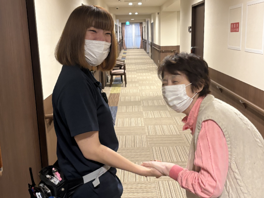 「前の職場は介護度が高くて、人も少なくて残業も多かったです。ここはインカムですぐ助けを呼べるチームプレー。そこが全然違うと思います。」