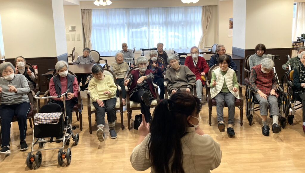 普段のリハビリとは違った動きを取り入れた体操でしっとり汗をかかれているかたもチラホラおられました。
